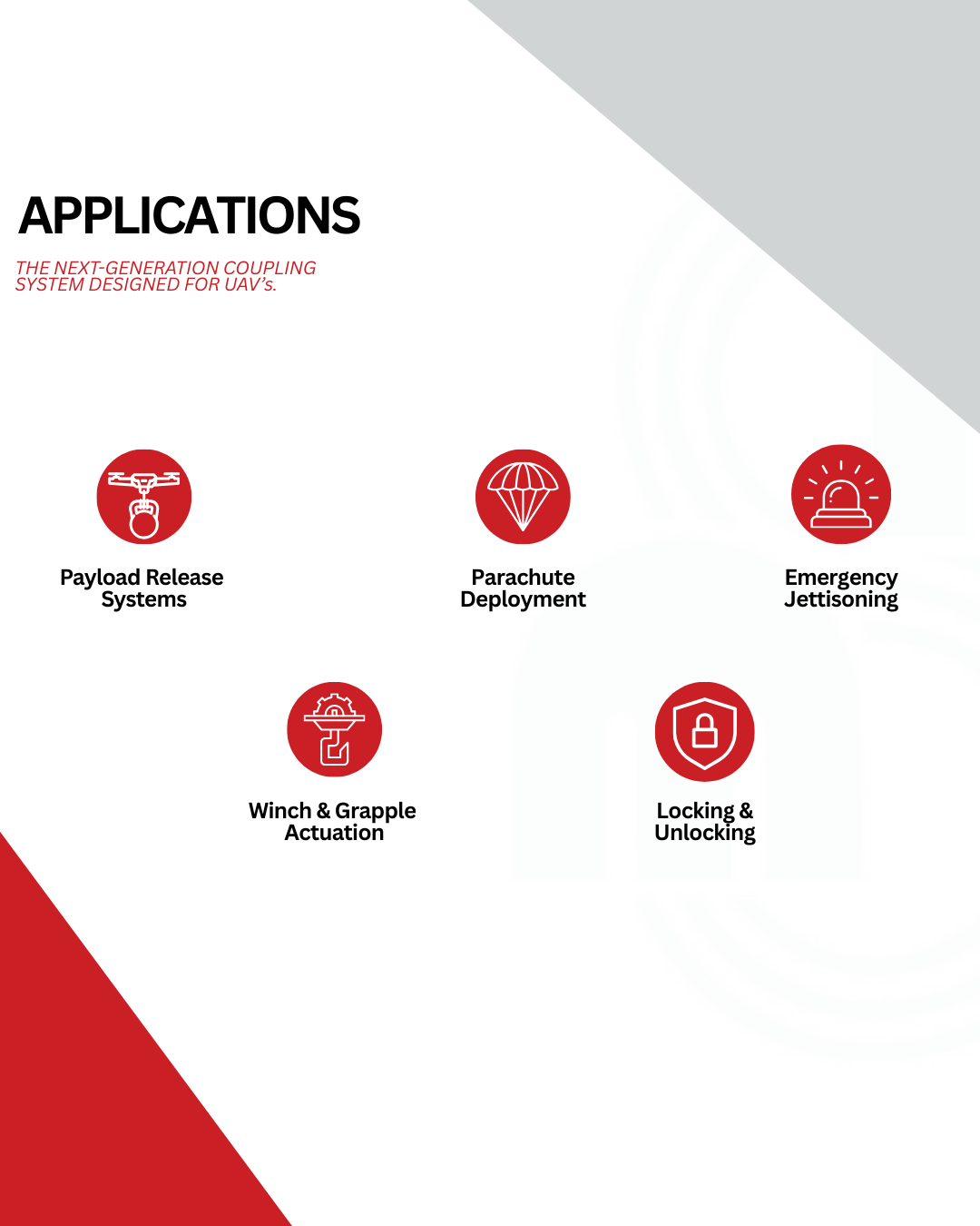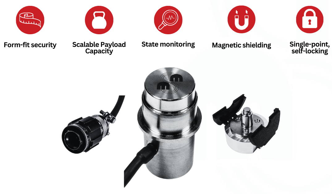 - Its fail-safe design ensures payloads stay locked during power loss.